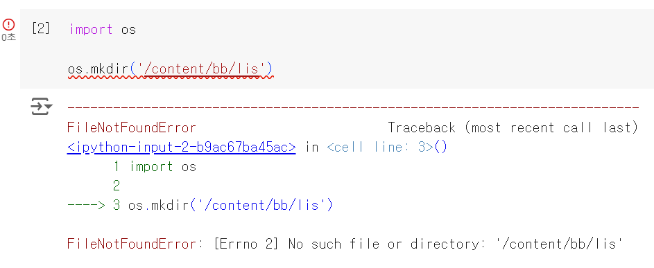 디렉터리가 존재하지 않는다면 FileNotFoundError